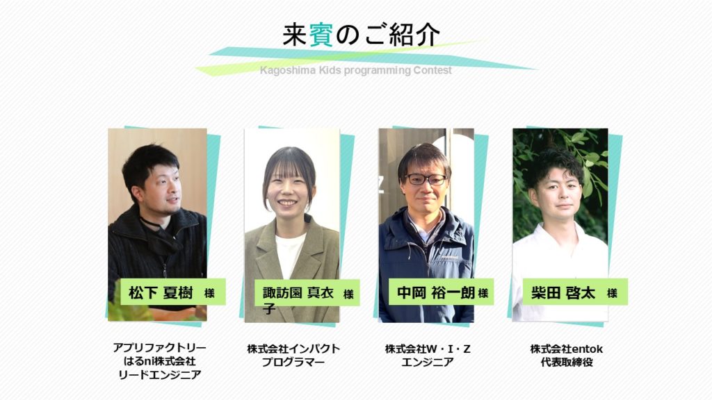 今年も教育委員会の方、IT企業の経営者の方、プログラマーやエンジニアの方などなど、このコンテストは本当に鹿児島の未来の子ども達にご賛同いただき、応援してくださる地域の企業様や皆さまに支えられていると実感させていただきます。