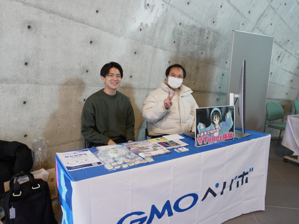GMOペパボのブースでは、配信者向けサポートサービス「Alive Studio」を紹介しました。担当の寳來さんは「子どもたちにも楽しんでもらいたい」と話し、VTuberなどの配信活動を支える仕組みを体験できる形で用意しました。当日は子どもたちや保護者が次々に体験し、「こうやって配信しているんだね」「キャラクターや背景がかわいい」といった声が上がっていました。鹿児島オフィス立ち上げ期にUターンで入社した寳來さん。地元で充実した仕事ができていることに喜びを感じており、「提供したサービスが実際に使われて、“便利になったよ”という声をいただけたときが一番です!」と、笑顔で語ってくれました。